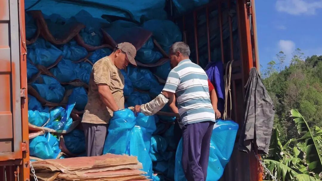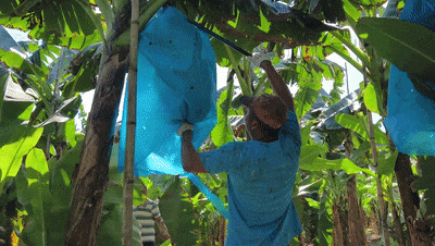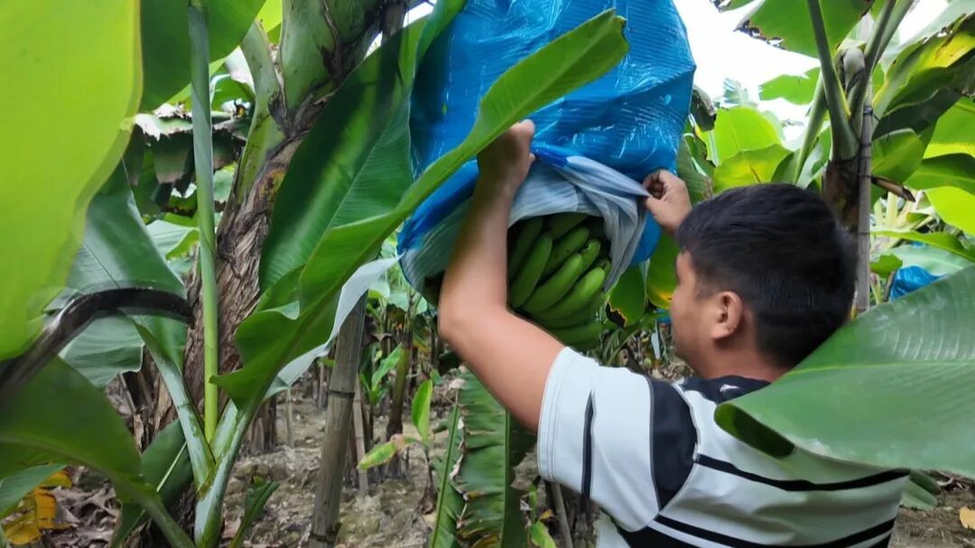 这些参与采收的村民多来自周边村落,在采收季及日常管理中,基地会聘请周边十余位村民来务工,从事摘蕉、套袋、施肥、绑竹等工作,让村民在家门口实现增收。