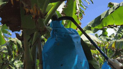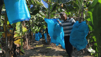 走进这片蕉林,基地负责人李良波踮脚拍了拍果串,蓝袋顺着他的动作晃了晃,露出里头裹着泡沫网的蕉身,他回忆道,“这100亩地去年还是荒的,草长得比人高,我们前期清了半个月的杂树野草,又翻了三遍土,才种上这巴西蕉苗。”