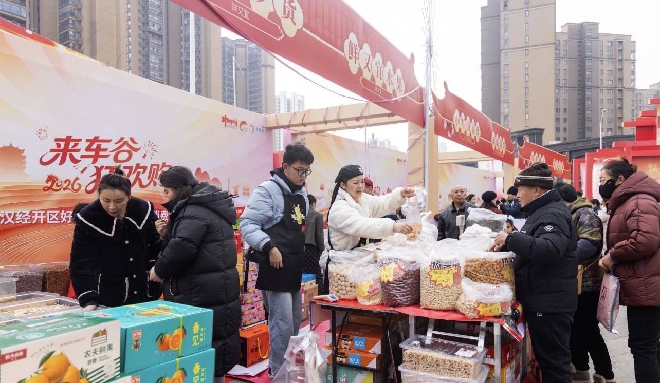 2026年2月7日,“来车谷,狂欢购”武汉经开区好车美食年俗年货消费季军山专场在军山新城车都春台里商圈广场正式启动。活动现场汇聚“车谷造”新能源汽车、传统民俗手作、特色年货美食及便民服务,为市民打造一站式沉浸式消费体验,拉开新春消费热潮序幕。